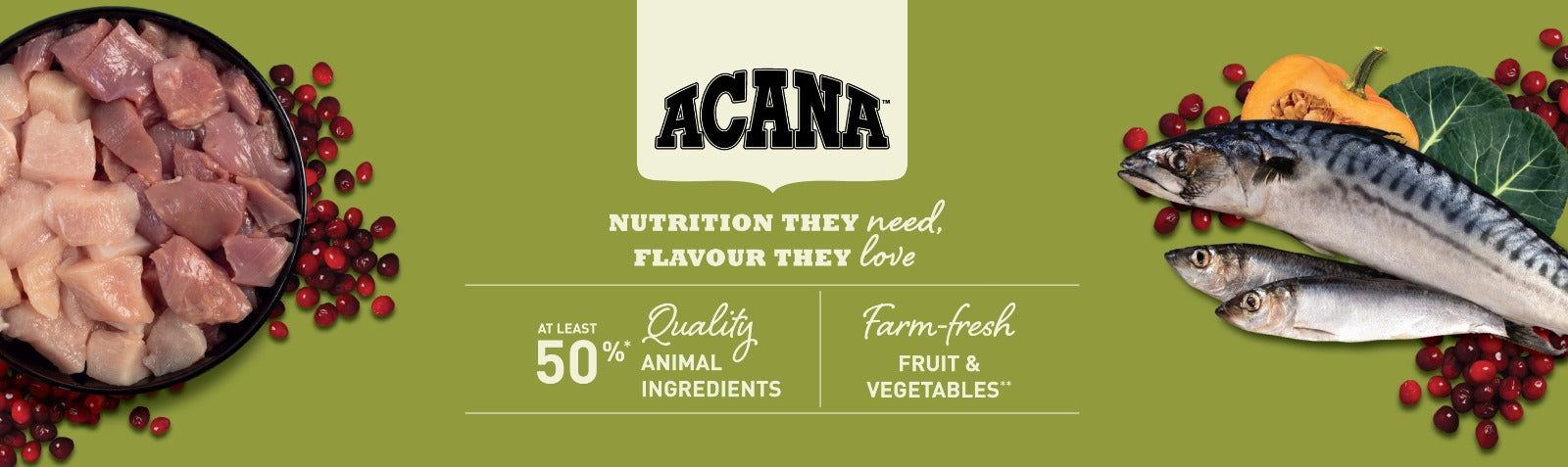 ACANA™ premium dog foods and treats are protein-rich, nutritious, and delicious, using ingredients from a curated group of farmers, ranchers, and fishers we’ve known and trusted for decades. Our recipes are ideal for dogs of all ages including puppies, adult dogs, and senior dogs, and are available in no-grain recipes, Wholesome Grains recipes, and Singles recipes for dogs with sensitivities.